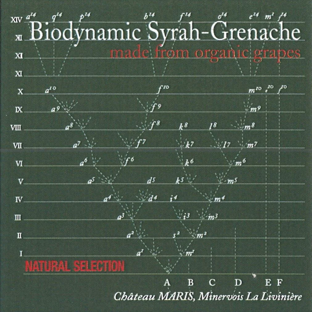 The label itself took six month to design with the help of John Daponte of BRDG in Brooklyn. After going through many, many ideas, John finally copied a Charles Darwin’s “On the Origin of Species” printed tree diagram from 1859 and applied it to the front label. That was it. The dark green color is an unknown pantone. In effect, the ink that we use to print our labels was absorbed by the recycled paper in a way that we did not anticipate. This is the reason why the label above is a sleek gray and the real label is instead forest green (it was meant to be?). I did not really want to have a “green” wine with a green colored label, but since it would have taken more than a month to fix, I decided to go with it . Proving once again that successful marketing are often happy accidents.